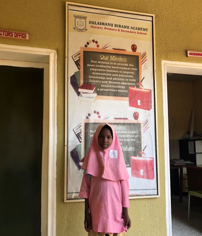 Pictured is one of our beneficiaries, Fatima Mohammed. She was the best pupil in primary 1 in Bako primary school Yola. Jangen initiative enrolled her in Suleiman Ribadu Academy, a renowned private school, after she passed the entrance exam into the school. She has been performing quite well since her enrolment.
